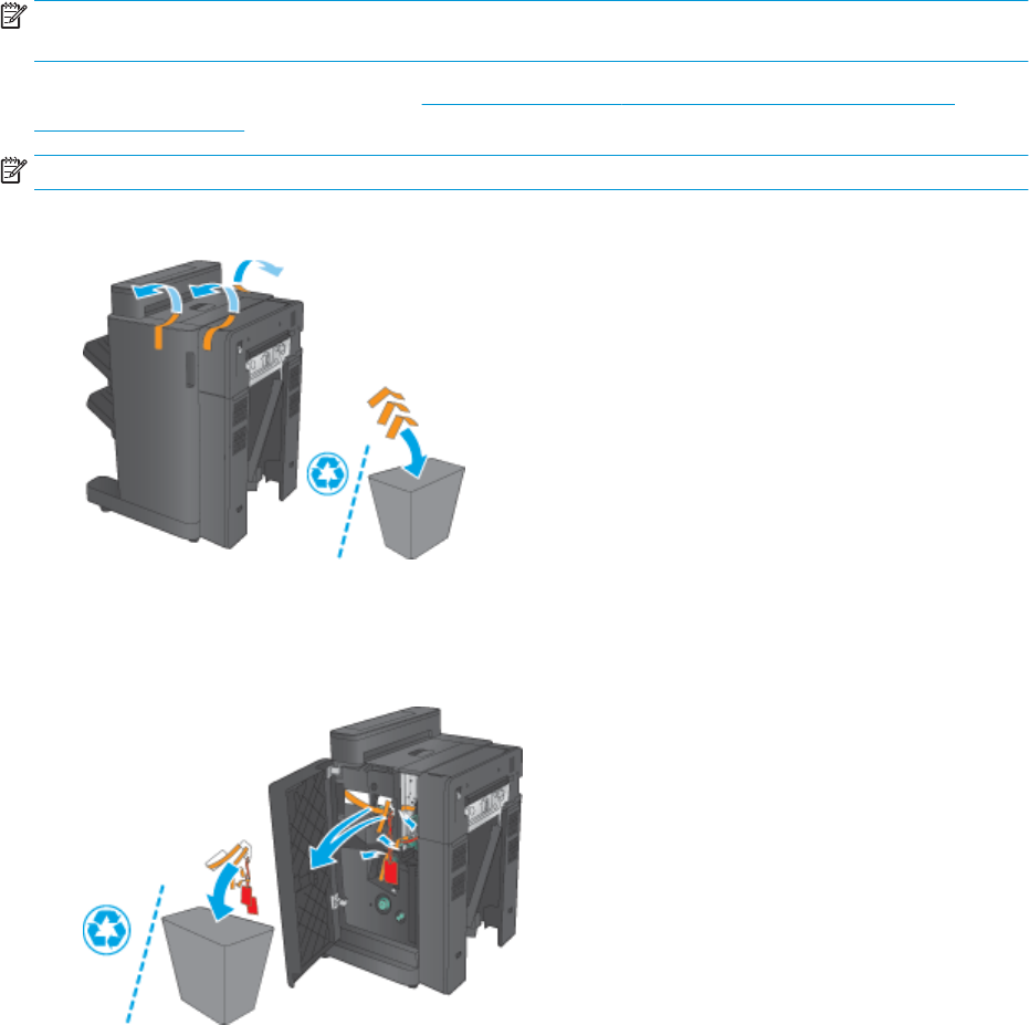 POZNÁMKA: Společnost HP doporučuje vadnou sešívačku/stohovač řádně zlikvidovat.