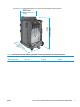 Tabel 1-2 Ruimtevereisten met alle kleppen en laden geheel geopend