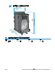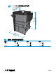 表格 1-9 產品與附加配件的空間要求(所有擋門、紙匣和文件進紙器均完全打開)