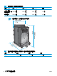 表格 1-8 配件實體尺寸(所有擋門和紙匣均關閉)