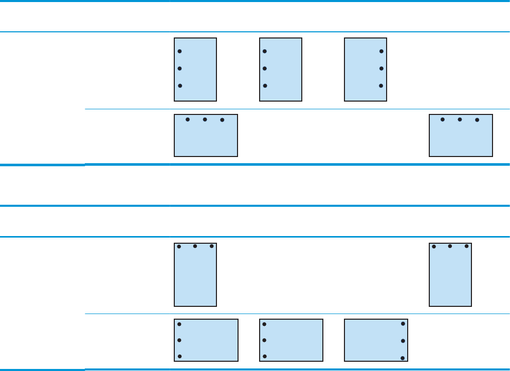 표 4-4 3 개 홀 펀치 옵션(용지 크기별) – 짧은 가장자리 용지함 공급 방향