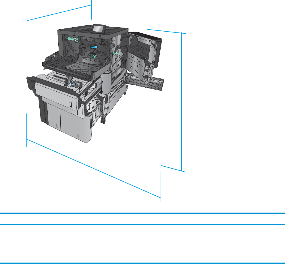 그림 1-4 M806x+ 공간 요구 사항(모든 도어 용지함이 완전히 열린 상태)