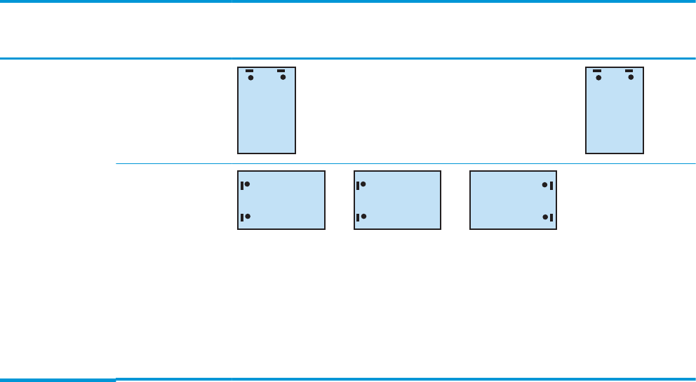 표 5-12 2 개 스테이플 및 2 개 홀 펀치 옵션(용지 크기별) – 짧은 가장자리 용지함 공급 방향