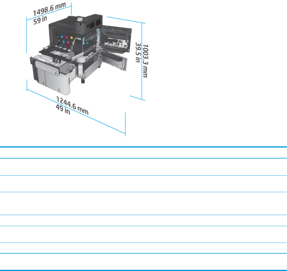그림 1-12 공간 요구 사항(모든 도어 및 용지함이 완전히 열린 상태)