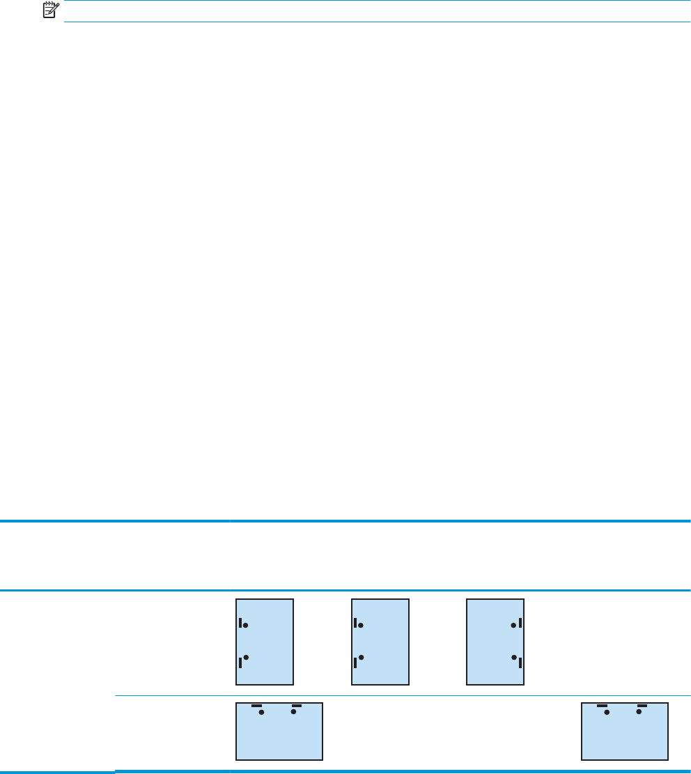 Tabulka 5-11 Možnosti sešívání se dvěma svorkami a děrování se dvěma otvory podle formátu papíru – orientace plnění