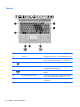 (4) Skārienpaneļa labā poga Darbojas kā ārējās peles labā poga.