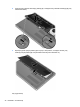 2. Przesuń prawy zatrzask zwalniający baterię (3), a następnie lewy zatrzask zwalniający (4), aby