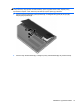 3. Dopasuj wypustki pokrywy baterii (1) do wycięć w komputerze, a następnie dociśnij, aby