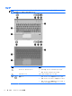 (6) 右のタッチパッド ボタン 外付けマウスの右ボタンと同様に機能します