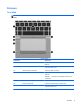 (5) Venstre TouchPad-knap Fungerer som venstre knap på en ekstern mus.