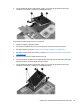 9. Use la pestaña de plástico para levantar el lado con conector de la unidad de disco duro,