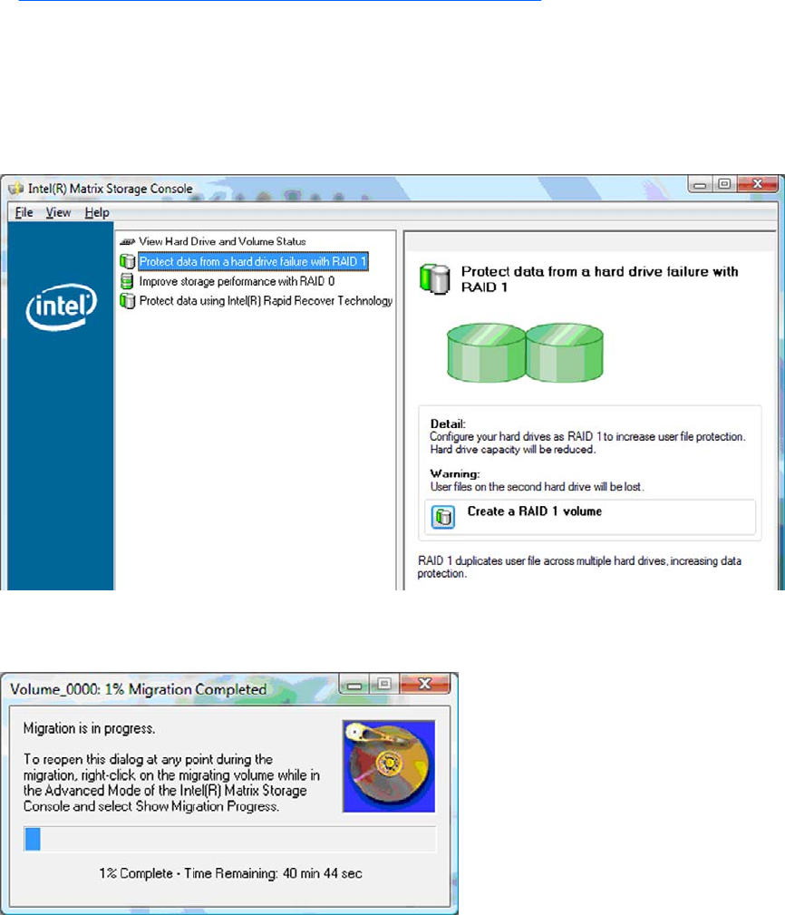 Initiér RAID-overførsel vha. Intel Matrix Storage Console 15