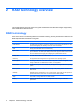 2 RAID technology overview This chapter defines the terms used in this guide and describes the RAID technologies supported by select HP Business Notebook PCs. RAID terminology Some of the terms in the following table have a broader meaning, but they are defined in relation to the RAID implementation described in this guide. 2 Term Definition Fault tolerance The ability of the computer to continue to operate if one drive fails.