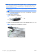 13. 將電源線 (1) 和資料排線 (2) 連接到光碟機背面。
