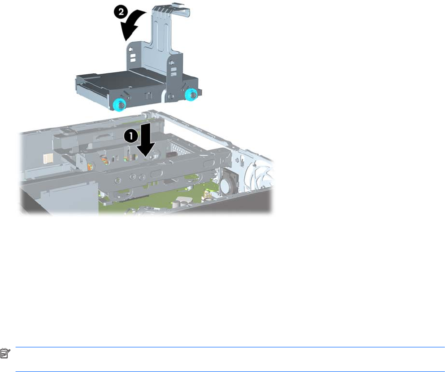 14. Чтобы поместить контейнер жесткого диска обратно в корпус компьютера, совместите