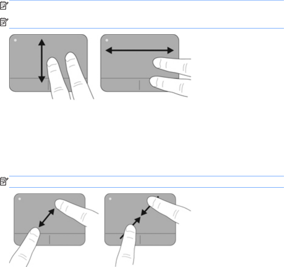 posúvať, umiestnite dva prsty mierne vzdialené od seba na zariadenie TouchPad a presúvajte ich