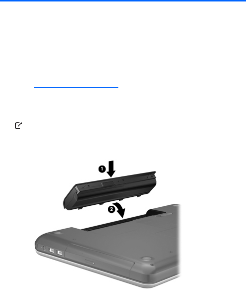 Batériu (1) vložte do pozície pre batériu a zatláčajte ju (2), kým nezapadne na miesto.