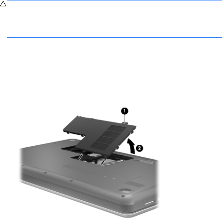 5. Zložte kryt priestoru pre pamäťový modul (2).