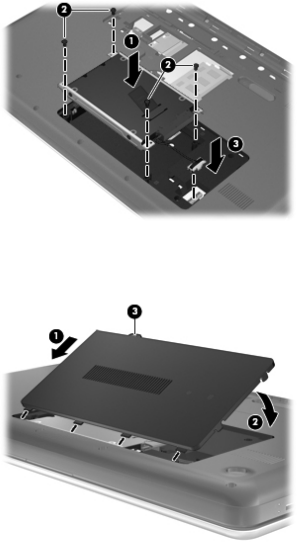 6. Priskrutkujte skrutku krytu pevného disku (3).
