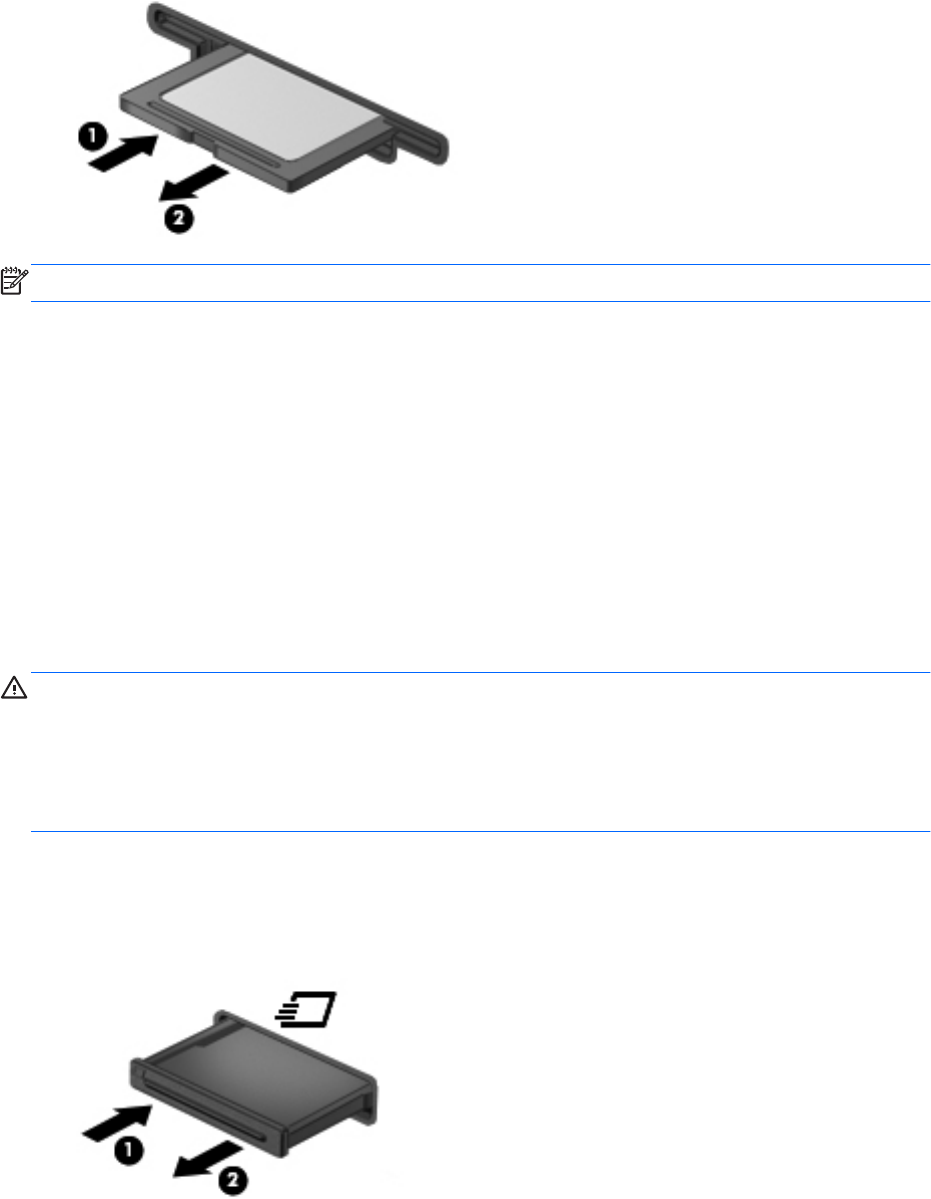 注意: 為避免電腦和外接式媒體卡受損,請勿將 PC 卡插入 ExpressCard 插槽。