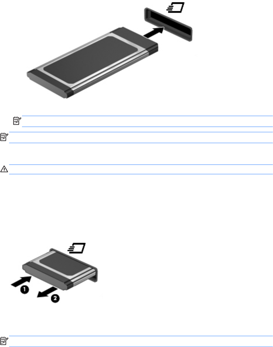2. 將卡片插入 ExpressCard 插槽,然後施力推入卡片,直到卡片確實卡住定位。