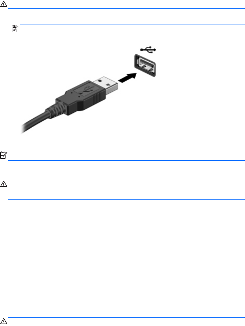 注意: 為降低 USB 接頭受損的風險,取出 USB 裝置時,請不要用力拉扯纜線。