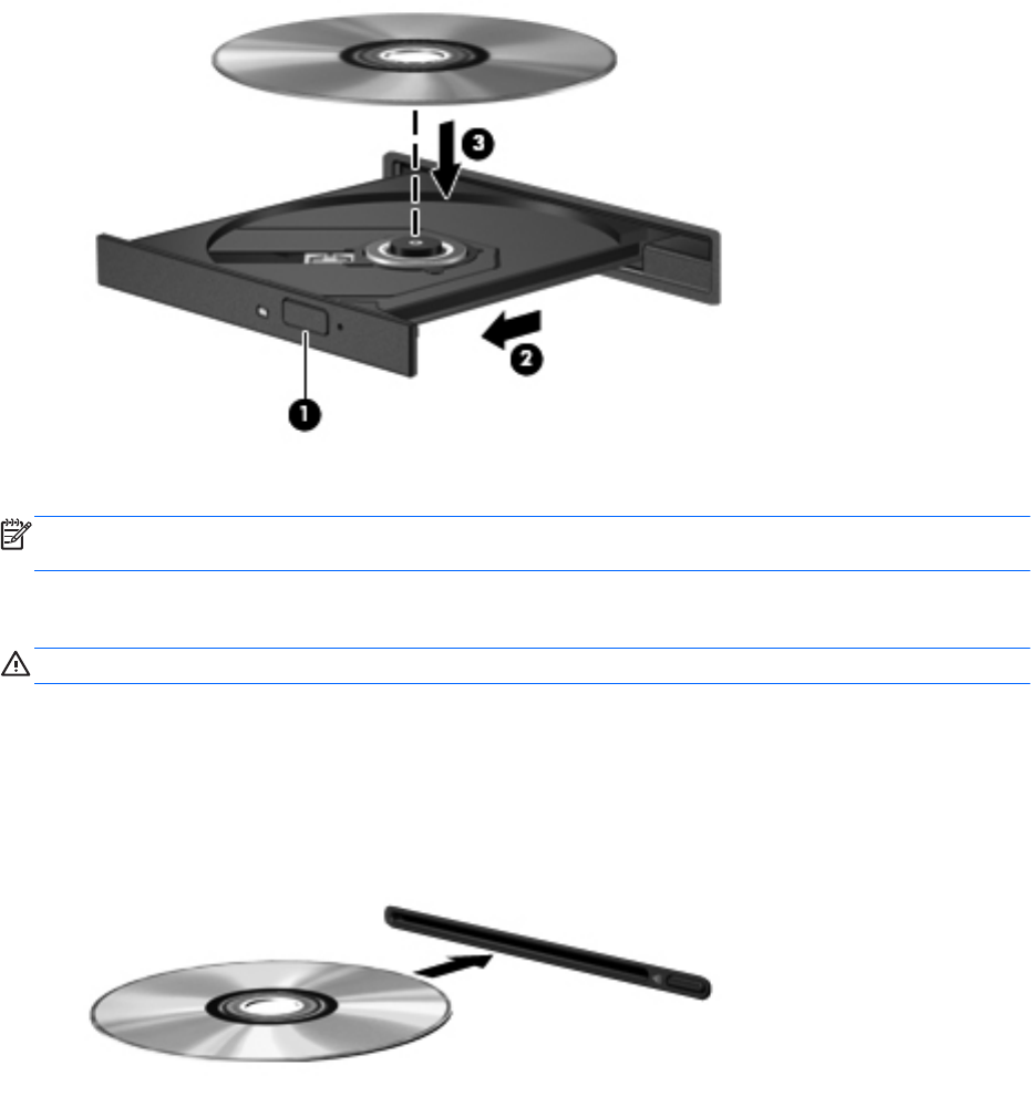 5. 輕輕將光碟壓入托盤軸 (3),直到光碟卡住定位。