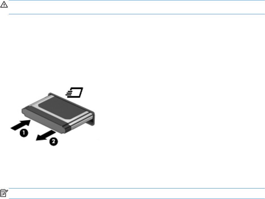 a. Empurre a placa ExpressCard suavemente para dentro (1) para a desbloquear.