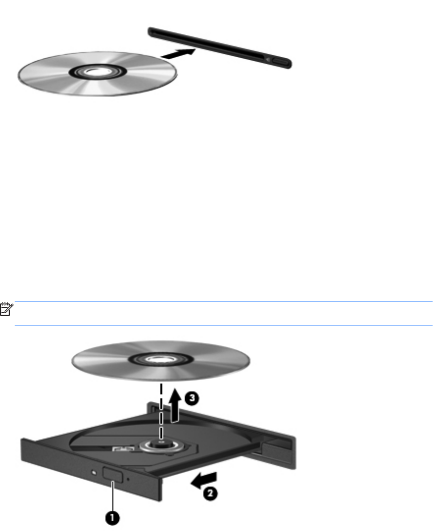 3. Faça deslizar o disco para dentro da unidade óptica de carregamento na ranhura.