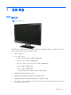 1 제품 특징 LCD 모니터 그림 1-1 LCD 모니터 HP LCD(액정 디스플레이) 모니터에는 LED 백라이트가 장착된 활성 매트릭스, TFT(박막 트랜지스터) 화면이 사용되었으며 다음과 같은 특징이 있습니다.