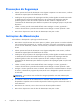 Problema Solução O ecrã fica preto ou tem uma resolução mais baixa quando reproduz conteúdos de alta definição (HD). Verifique se o seu monitor e computador suportam HDCP. Tenha em conta Protecção de conteúdos digitais de banda larga de modelos seleccionados na página 13 ou www.hp.com/ support. Sem Áudio. Certifique-se que o cabo de áudio da coluna e o cabo de alimentação USB estão ligados directamente ao computador. NOTA: O Plug and Play não funciona.