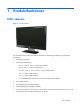 1 Produktfunktioner LCD's skærme Figur 1-1 LCD's skærme HP LCD-skærme har en aktiv matrix-baseret TFT-skærm med LED-baggrundsbelysning og følgende egenskaber: ● Stort diagonalt display ● Maksimal grafikopløsning ◦ 2011x / 2011xi/ 2011s: 1600 x 900 @ 60Hz ◦ 2211f / 2211x: 1920 x 1080 @ 60 Hz ◦ 2311cm / 2311f / 2311x/2311xi: 1920 x 1080 @ 60Hz ◦ 2511x: 1920 x 1080 @ 60 Hz ◦ 2711x: 1920 x 1080 @ 60 Hz ◦ Plus understøttelse af fuld skærm for lavere opløsninger (alle modeller) ● VGA-indgangssi
