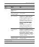 Utilitaire Computer Setup (F10) Utilitaires Computer Setup (suite) Menu Option Type Storage (Stockage de données) (suite) Storage Options (suite) Legacy Diskette Drives (Écriture sur anciennes disquettes) Active/désactive la possibilité d’écrire des données sur d’anciennes disquettes. ✎ Une fois que les modifications apportées dans la section Removable Media Write ont été enregistrées, l’ordinateur redémarre. Éteignez, puis rallumez l’ordinateur manuellement.