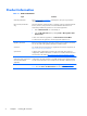 Support Table 1-2 Support Topic Product support Location For U.S. support, go to http://www.hp.com/go/contactHP. For worldwide support, go to http://welcome.hp.com/country/us/en/wwcontact_us.html.