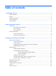 Table of contents 1 Locating HP resources ....................................................................................................... 1 Product information .................................................................................................................. 2 Support ................................................................................................................................... 3 Product documentation ...............................................................