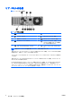 メディア カード リーダーの各部 メディア カード リーダーは、一部のモデルでのみ使用できるオプション デバイスです。メディア カ ード リーダー各部の位置については、以下の図と表を参照してください。 図 1-3 メディア カード リーダーの各部 表 1-2 メディア カード リーダーの各部 1 2 3 JAWW SmartMedia/xD ピクチャ カード用スロット ● 3.3V SmartMedia カード(SM) ● xD ピクチャ カード メディア カード リーダー ランプ SD/MMC+/miniSD 用スロット ● SD(Secure Digital)カード ● MiniSD ● MultiMediaCard(MMC) ● RS-MMC(Reduced Size MultiMedia Card) ● MultiMediaCard 4.0(Mobile Plus) ● MMC Mobile(Reduced Size MultiMedia Card 4.