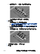 升級主要記憶體模組插槽中的記憶體模組 若要升級主要記憶體模組插槽中的記憶體模組,請依照下列步驟執行: 1. 儲存您的工作內容。 2. 將電腦關機。 如果您不確定電腦是否已關機或休眠,先按電源按鈕開啟電腦, 再透過作業系統來關閉電腦。 ZHTW 3. 中斷所有外接式裝置與電腦的連接。 4. 將電源線從 AC 電源插座拔下。 5. 請將電腦翻轉,以底部朝上放置於平面。 6. 將電池從電腦中取出。 7. 移除 2 個鍵盤存取螺絲。 8. 將電腦翻過來,並打開它。 9.