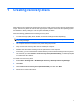 Backup suggestions ● Create a set of recovery discs using HP Backup & Recovery Manager. ● Create system recovery points using HP Backup & Recovery Manager, and periodically copy them to disc. ● Store personal files in the Documents folder and back up these folders periodically. ● Back up templates stored in their associated programs. ● Save customized settings in a window, toolbar, or menu bar by taking a screen shot of your settings.