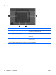 Onderdeel Beschrijving (6) Num lock-lampje Aan: num lock is actief of het geïntegreerde numerieke toetsenblok is ingeschakeld. (7) Lampje Geluid uit ● Uit: het geluid van de computer is ingeschakeld. ● Aan: het geluid van de computer is uitgeschakeld. (8) Lampje Geluid zachter Knipperend: de schuifzone voor het geluidsvolume wordt gebruikt om het geluidsvolume te verlagen.