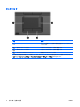 前面の各部 名称 (1) (2) (3) (4) 説明 無線ランプ 電源ランプ バッテリ ランプ ドライブ ランプ ● 点灯:無線ローカル エリア ネットワーク(無線 LAN)デバ イス、HP ブロードバンド無線モジュール、または Bluetooth デバイスなどの内蔵無線デバイスの電源がオンになっていま す ● 消灯:すべての無線デバイスがオフになっています ● 点灯:コンピュータの電源がオンになっています ● 点滅:コンピュータがスタンバイ状態になっています ● すばやい点滅:より大きい定格電力の AC アダプタを接続す る必要があります ● 消灯:コンピュータの電源がオフになっているか、ハイバネ ーション状態になっています ● オレンジ色:バッテリが充電中です ● 緑色:バッテリが完全充電時に近い状態です ● オレンジ色で点滅:電源にバッテリのみを使用している状態 で、ローバッテリ状態になっています。完全なローバッテリ 状態になると、バッテリ ランプがすばやく点滅し始めます ● 消灯:コンピュータが外部電源に接続されている場合、コン ピュータに装着