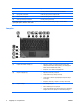 Komponente sa stražnje strane Komponenta Opis (1) Pričvršćuje dodatni sigurnosni kabel na računalo. Utor za sigurnosni kabel NAPOMENA: Sigurnosni kabel je zamišljen kao sredstvo odvraćanja, no on ne može spriječiti loše rukovanje ili krađu računala. HRWW (2) Priključak za napajanje Spaja ispravljač izmjenične struje. (3) Utičnica za S-Video izlaz Spaja dodatni S-Video uređaj poput televizora, videorekordera, kamere, projektora ili kartice za snimanje video zapisa.