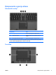 Komponenta Opis (1) TouchPad* Pomiče pokazivač i bira ili aktivira stavke na zaslonu. (2) Lijevi gumb TouchPada* Radi kao lijevi gumb na vanjskom mišu. (3) Desni TouchPad gumb* Radi kao desni gumb na vanjskom mišu. (4) Zona za pomicanje TouchPada* Pomiče prema gore ili dolje. *Ova tablica opisuje tvorničke postavke. Za pregled ili promjenu preferenci pokazivačkog uređaja, odaberite Start > Upravljačka ploča > Hardver i zvuk > Miš.