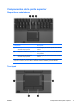 ESWW Componente Descripción (8) Compartimento del módulo de memoria Contiene las ranuras del módulo de memoria. (9) Compartimento de la unidad de disco duro Contiene la unidad de disco duro.