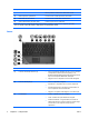 Componentes da parte posterior Componente Descrição (1) Permite ligar um cabo de segurança opcional ao computador. Ranhura do cabo de segurança NOTA: O cabo de segurança foi concebido para funcionar como factor de desencorajamento, mas poderá não evitar que o computador seja indevidamente utilizado ou furtado. PTPT (2) Conector de alimentação Liga um transformador CA.