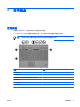 5 使用指点设备 以下插图和表格标出并说明笔记本计算机的指点设备。 组件 说明 (1) 指点杆左按钮 功能类似于外接鼠标的左键。 (2) 指点杆 移动指针,选择或激活屏幕上的项。 (3) 指点杆右按钮 功能类似于外接鼠标的右键。 *此表介绍的是出厂时的设置。 要查看和更改指点设备首选项,请选择 Start(开始)> Control Panel(控制面板)> Hardware and Sound(硬件和声音)> Mouse(鼠标)。 12 第 5 章 使用指点设备 ZHCN