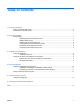 Table of contents 1 Using the TouchPad Setting TouchPad preferences ............................................................................................................. 2 Connecting an external mouse ............................................................................................................. 2 2 Using the keyboard Using hotkeys .......................................................................................................................................