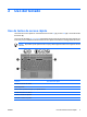 Configuración de las preferencias del Touchpad Para acceder a la ventana Propiedades del Mouse, seleccione Inicio > Panel de control > Hardware y sonido > Mouse. Utilice Propiedades de mouse de Windows® para personalizar la configuración de los dispositivos señaladores, como la configuración del botón, la velocidad y las opciones de puntero. Conexión de un mouse externo Es posible conectar un mouse externo USB al equipo utilizando uno de los puertos USB del equipo.