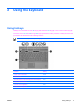 2 Using the keyboard Using hotkeys Hotkeys are combinations of the fn key (1) and either the esc key (2) or one of the function keys (3). The icons on the f3, f4 and f8 through f10 keys represent the hotkey functions. Hotkey functions and procedures are discussed in the following sections. NOTE: Your computer may look slightly different from the illustration in this section. ENWW Function Hotkey Display system information. fn+esc Initiate Standby.