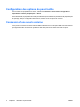 Configuration des options du pavé tactile Pour accéder aux propriétés de la souris, sélectionnez Démarrer > Panneau de configuration > Imprimantes et autres périphériques > Souris. Sous Windows®, les propriétés de souris permettent de personnaliser les paramètres de périphériques de pointage, tels que configuration des boutons, vitesse du clic et options du curseur. Connexion d’une souris externe Vous pouvez connecter une souris externe USB à l’ordinateur via l’un des ports USB.