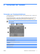 Festlegen der TouchPad-Einstellungen Wählen Sie für den Zugriff auf Maus-Eigenschaften Start > Systemsteuerung > Drucker und andere Hardware > Maus. In den Maus-Einstellungen im Windows®-Betriebssystem können Sie die Einstellungen für Zeigegeräte festlegen, z. B. für Tastenkonfiguration, Doppelklickgeschwindigkeit und Zeigeroptionen. Anschließen einer externen Maus Über die USB-Anschlüsse des Computers können Sie eine externe USB-Maus anschließen.